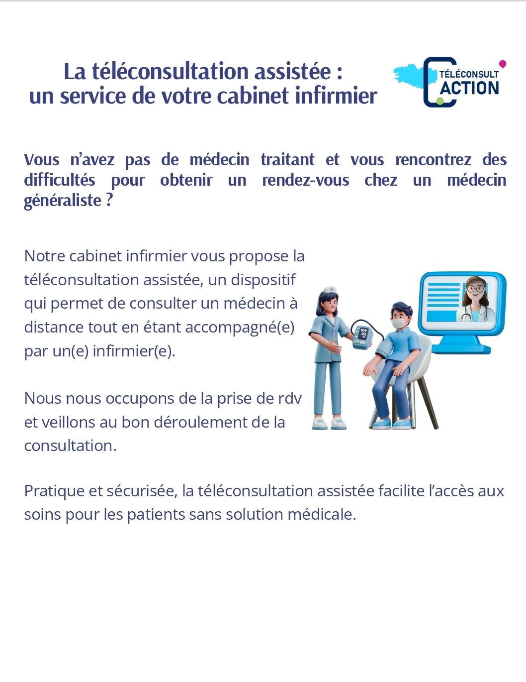 Ce site est un site d’information : Son but est d'informer les patients sur les soins pratiqués par le cabinet d'infirmier. Il n'a pas pour vocation la promotion de son activité. Ce site tient en compte l'article R.4312-37 du Code de la Santé Publique : “la profession d’infirmier ou d’infirmière ne doit pas être pratiquée comme un commerce. Tous les procédés directs ou indirects de réclame ou de publicité sont interdits aux infirmiers ou infirmières […]”.